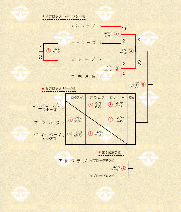 | 4月 19日(日) Bブロックリーグ戦 | ||